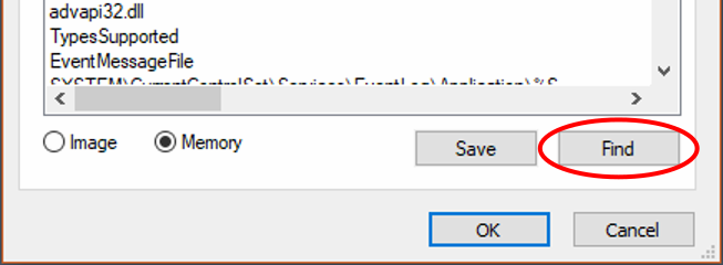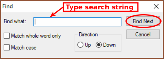 To search for a string, click on the Find button at the bottom.
