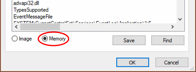To view the strings from the process in memory, click on the Memory radio button at the bottom.