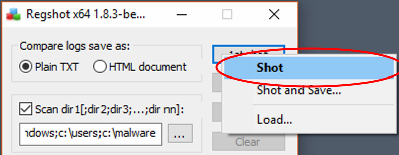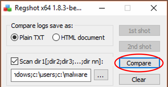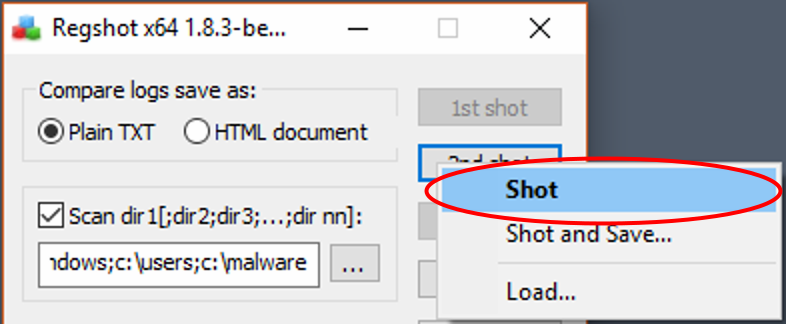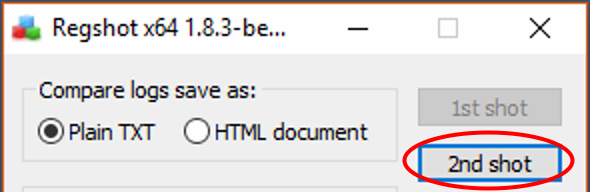 Take the second Regshot snapshot by clicking on the 2nd shot button on the right: